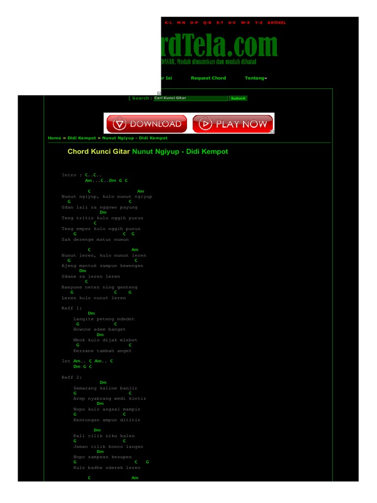 Kunci Gitar Dan Lirik Lagu Layang Kangen Didi Kempot