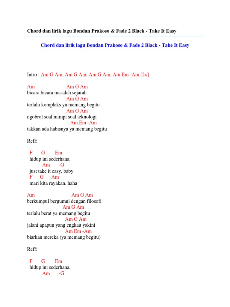 Chord Dan Lirik Lagu Bondan Prakoso Fade 2 Black Take