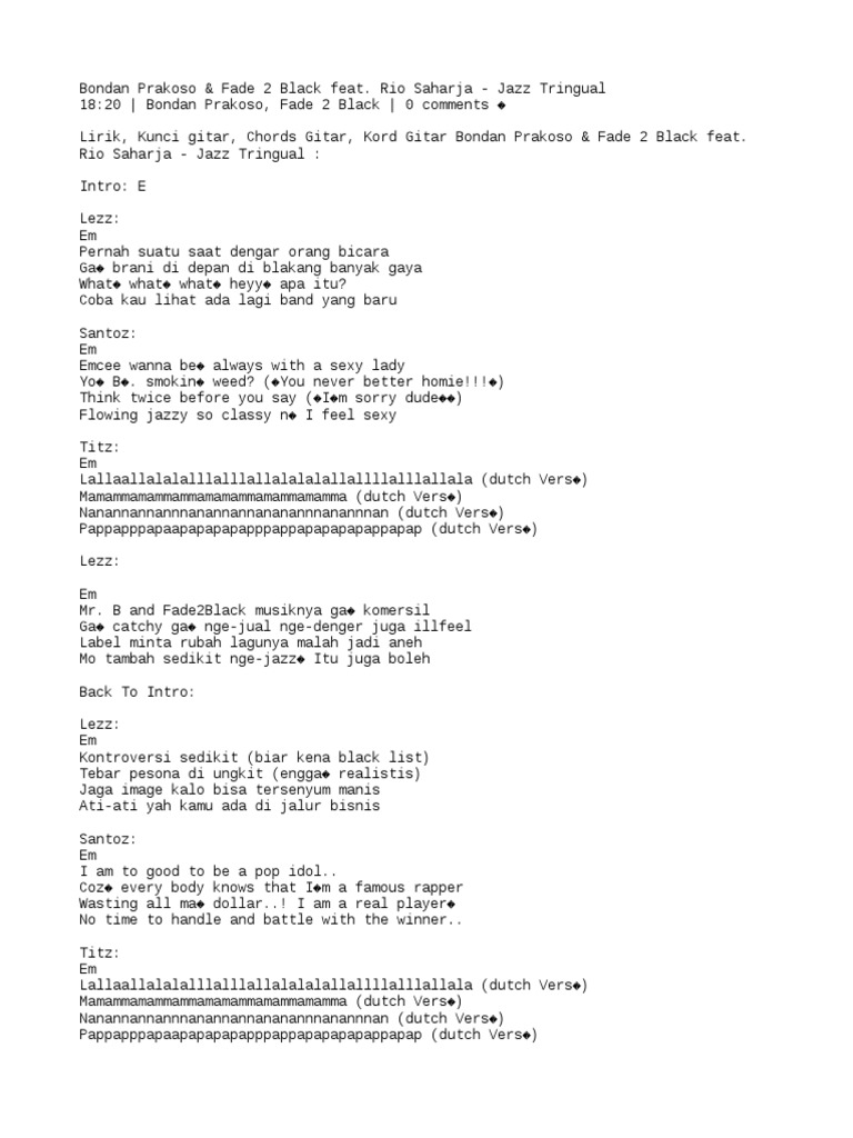 Lirik Chord Bondan Prakoso Fade 2 Black 1234 Chord Jpeg