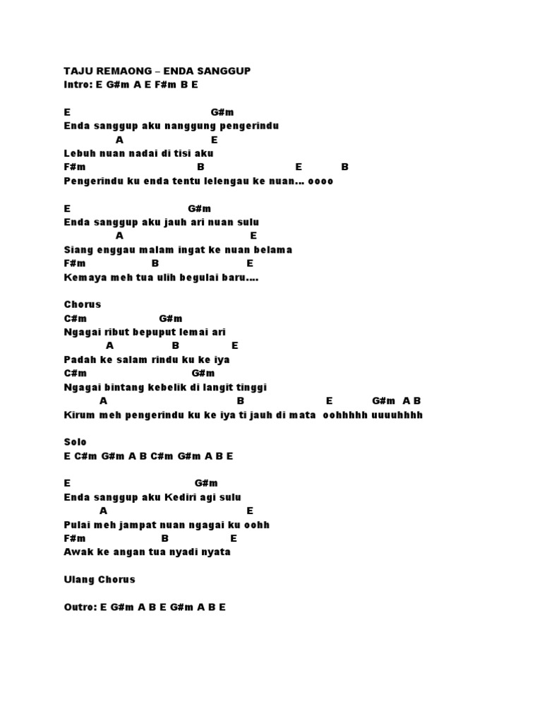 Chord lagu enda. Lirik lagu kaka enda putri pasanea nama lengkapnya adalah javrendzia eka putry pasanea tetapi dia lebih populer dan dikenali oleh masyarakat indonesia dengan nama putri pasanea. Lirik lagu dan kunci gitar kord chord enda maafkan aku am c g dm 2x am c g dm tak bisa kulupa saat saat indah bersama mu am c g dm semua cerita. Chord enda ungu maafkan aku.